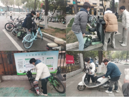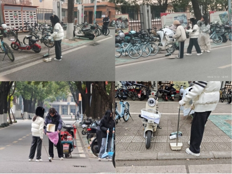 同学们还对校园内的车辆进行了有序摆放。他们明确分工,将随意停放的自行车集中到指定区域,使得自行车停放区井然有序。