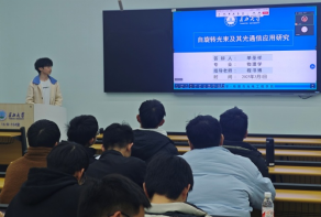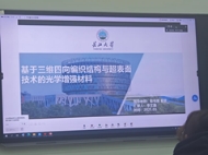 研究生刘虹孚汇报了太阳能吸收器通过特殊光学涂层和结构设计实现高效光热转换。研究提出外圆内方氮化钛结构,对300~2500nm波长范围平均吸收率92.4%,AM1.5太阳光谱平均吸收率94.8%,研究结果对太阳能光热转换领域具有重要应用价值。