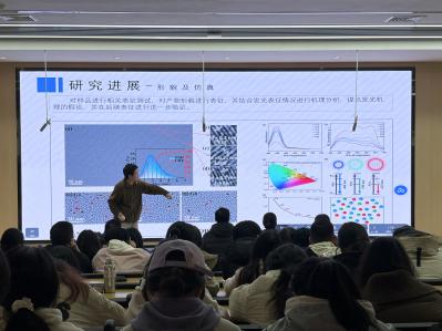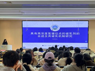化学与环境工程公司李周城同学汇报了高浓度氢键位点破乳剂的合成及相关研究,为工业污水处理领域的技术优化提供了新的研究思路;刘俊龙同学分享了泡沫镍基硫化物电催化剂的制备与性能研究情况,呈现了能源材料相关方向的阶段性研究成果。