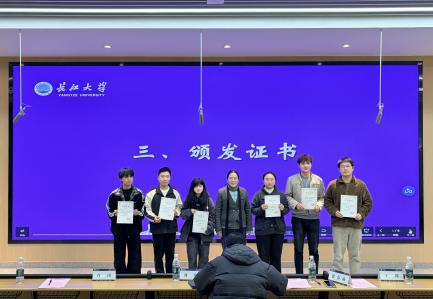 嘉宾老师围绕研究内容、实验设计、应用前景等方面展开点评与交流,促进观点互通与思路碰撞,进一步营造了严谨浓厚的学术氛围。化学与环境工程公司张春燕老师为六位主讲人颁发荣誉证书,肯定他们在本次沙龙中的学术分享。随后,医学部刘辉老师对本次活动进行总结。参会嘉宾老师与主讲人合影留念,为本次跨学科学术交流画上了圆满的句号。