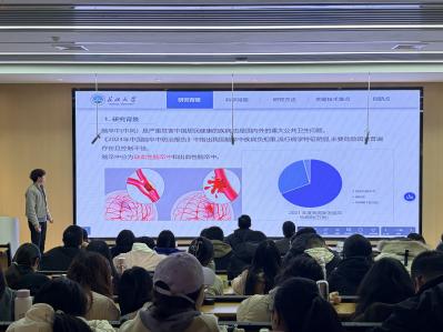 医学部覃可莹同学针对荆州地区 HPV-39 型基因多态性展开分析,阐述了该研究在相关疾病预防与临床研究中的支撑作用;江子杨同学则围绕脑缺血神经保护机制进行汇报,介绍了该领域的研究背景与自身的探索方向。