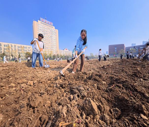 历经耕地翻土,播种浇水,施肥管理等过程,最初的荒地变为盛满粮食的沃土,每份付出迎来了回报。从十月开荒到今日丰收,每一步都闪耀着同学们辛勤的汗水。