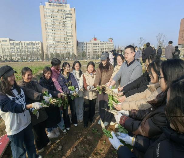 (通讯员:梁建军)1月6日下午,beat365官网中文版本组织2025级本科生劳动先锋团在16教旁劳动教育实践基地开展萝卜采收活动,2025-2026学年第一学期劳动教育实践迎来圆满收官。