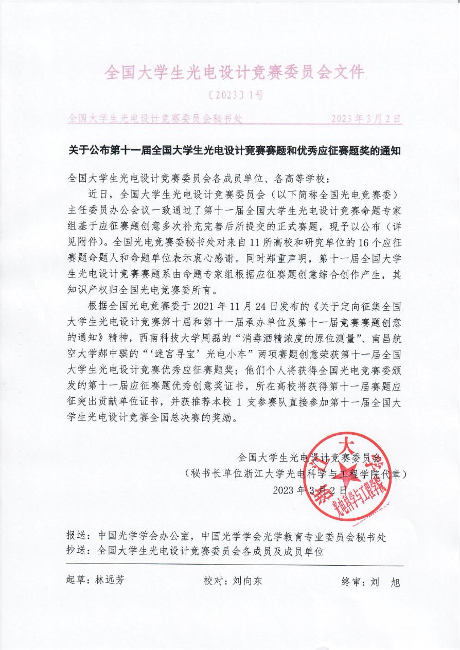 请有意参加第十一届全国老员工光电设计竞赛的同学加入QQ群655158504(申请加入时请备注“班级+姓名”),5月初将安排beat365官网中文版本初赛,初赛时需提交项目计划书和路演PPT(具体细节QQ群中再详细通知)。